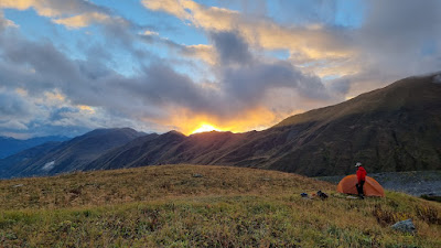 There has been no rain since 3pm. We decided to have a late lunch and explore the saddle. Few of us stayed at the camp. We could not find any path leading to the saddle, just finding our own trail. The last few hundred meters are more challenging, the slope is around 32 degrees. It was wet, snow patches sometimes, full of small rocks. For me, it was better to go left and then return to the right side. We had poor visibility at the saddle so could not explore what the ridge looks like or the way down. We returned by dark to the camp. It started raining again during the night.